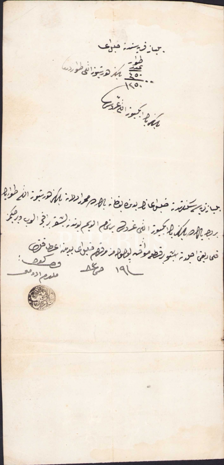 Hacı Halil ve Çavuş Emin Bey arasındaki Osmanlıca borç senedi, 11x24 cm