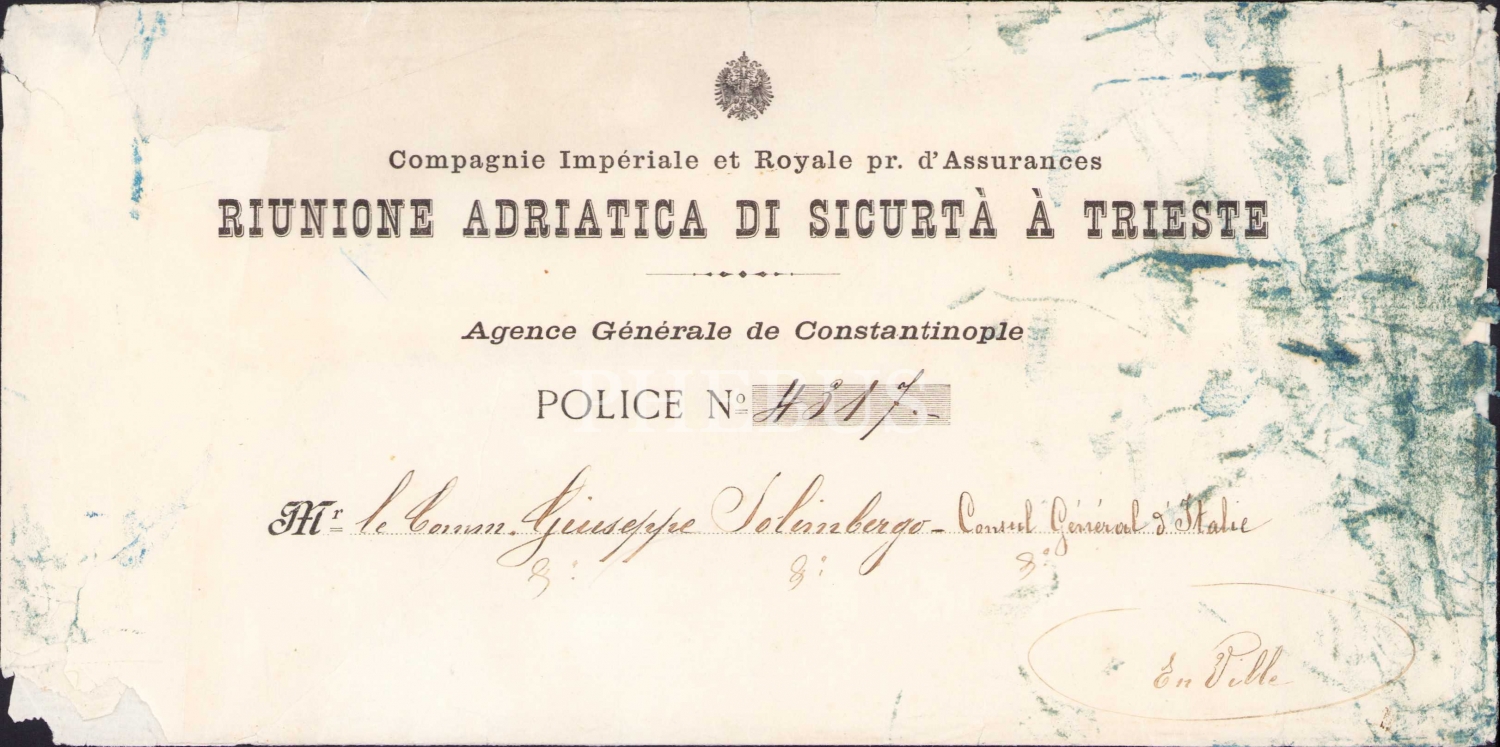Compagnie Imperiale et Royale pr. d'Assurances Riunione Adriatica Di Sicurtà A Trieste antelli zarf, Constantinople, haliyle, 26x14 cm