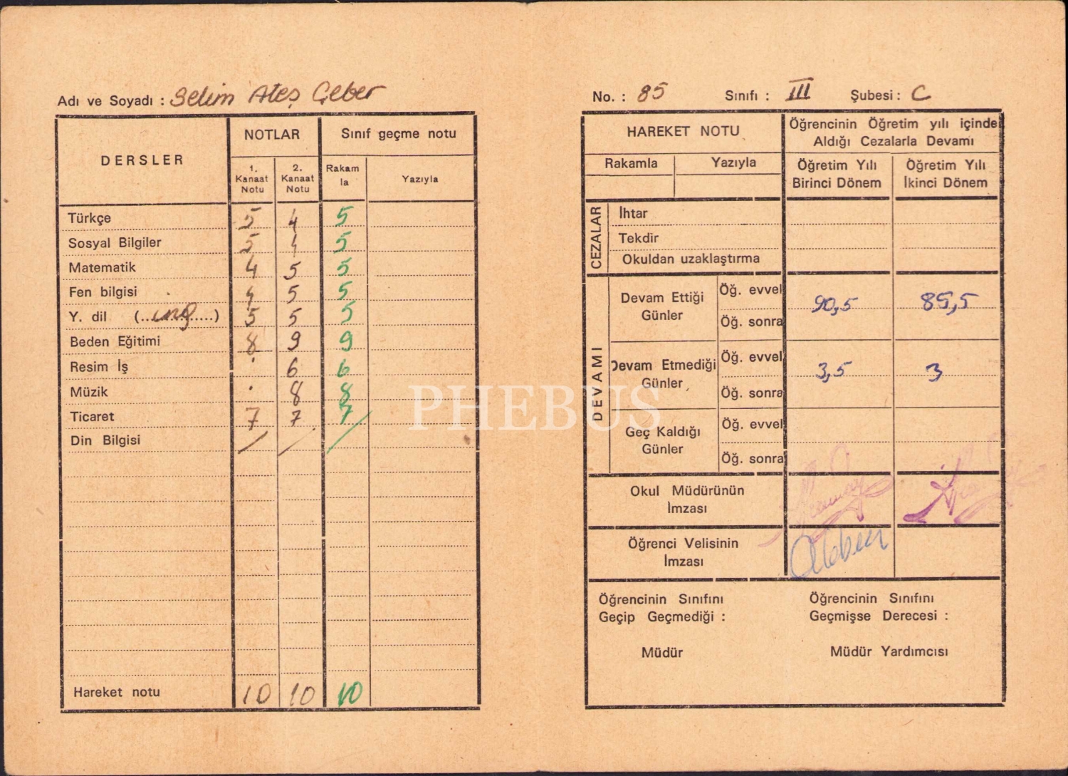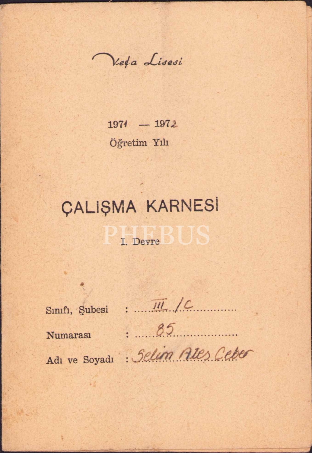 Vefa Lisesi çalışma karnesi, 1972, 10x16 cm