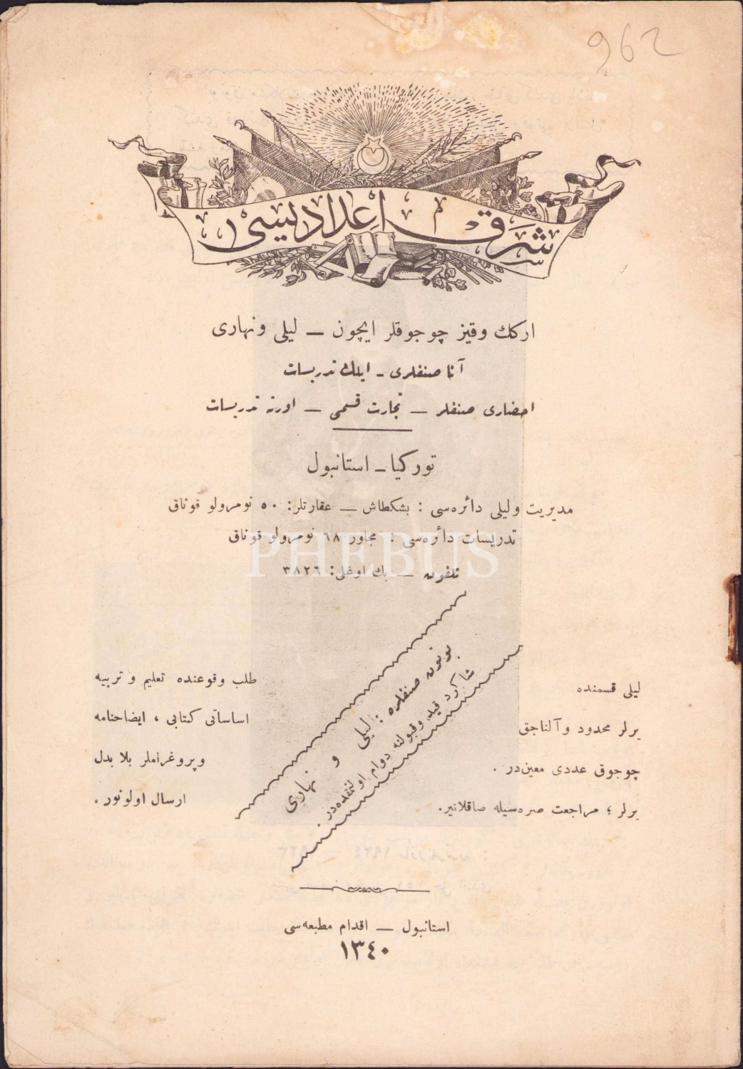 Osmanlıca Şark İdadisi Türkiye - İstanbul, İkdam Matbaası, İstanbul, 1340, haliyle, 14 sayfa, 15x22 cm
