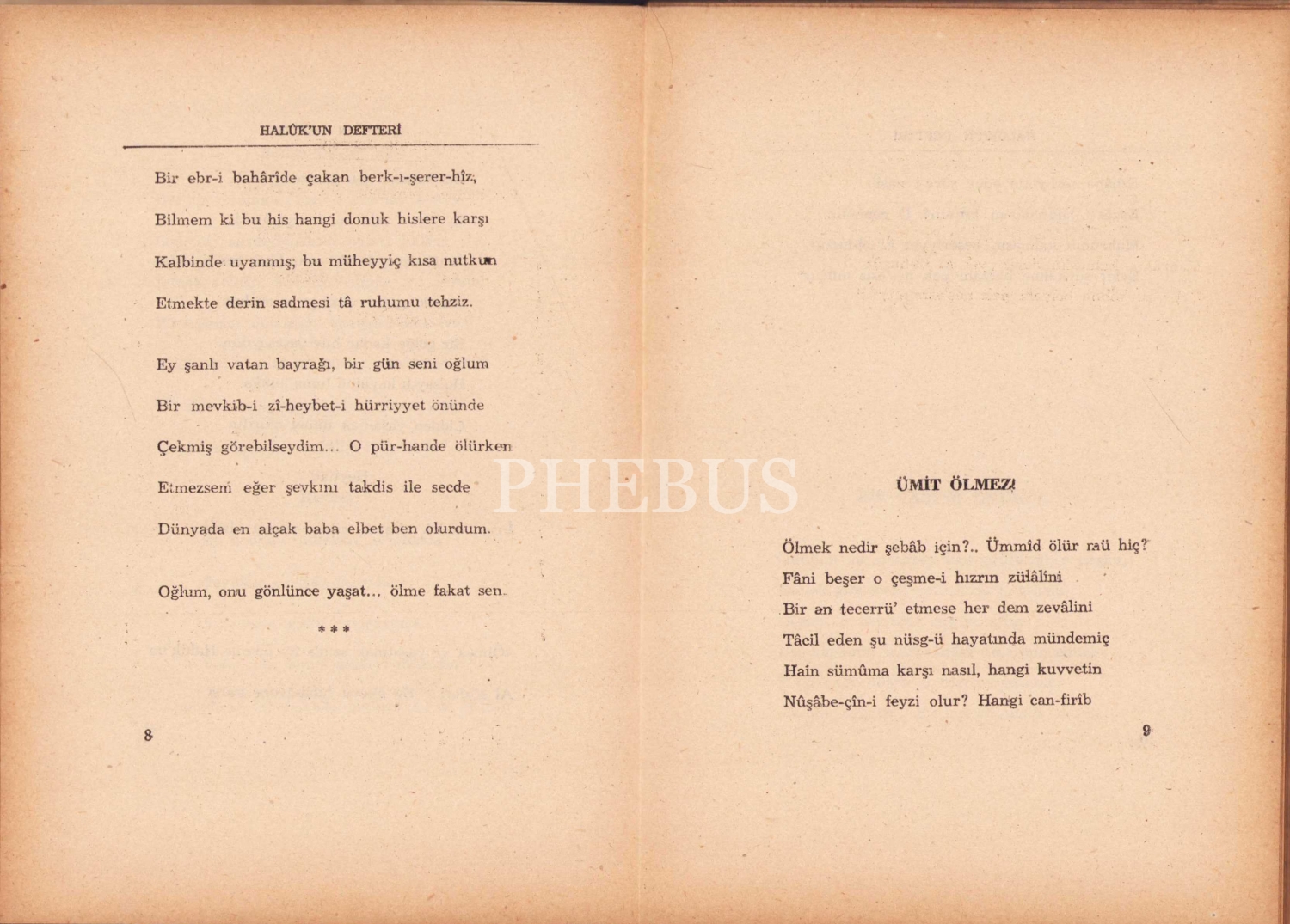 Haluk'un Defteri, Tevfik Fikret, İstanbul 1945, 101 sayfa