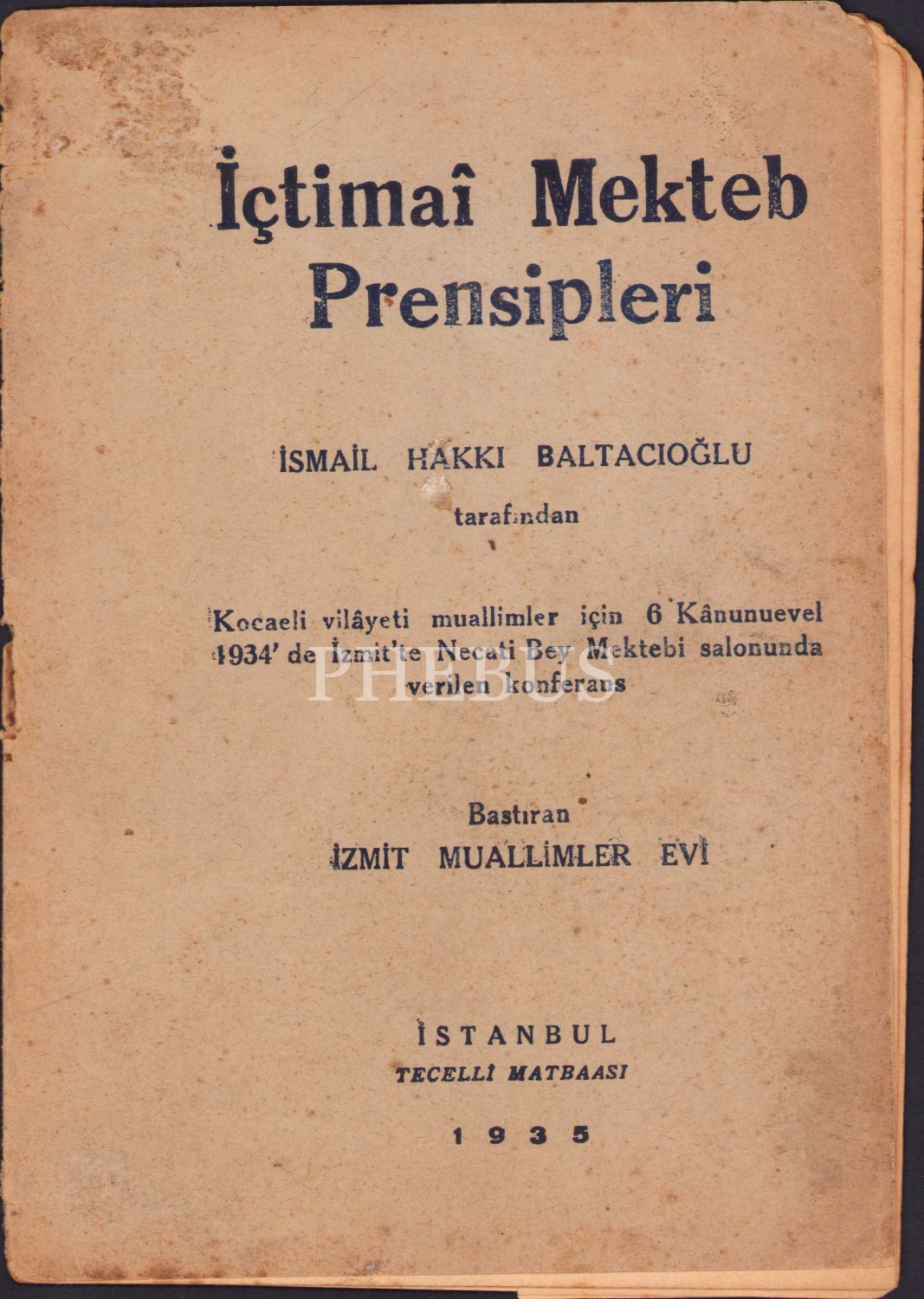 İçtimaî Mekteb Prensipleri, İsmail Hakkı Baltacıoğlu, İstanbul 1935, 15 sayfa