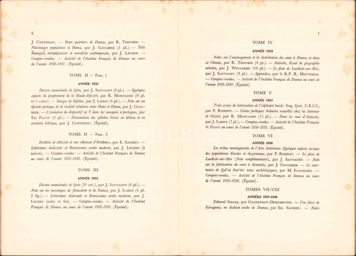 Liste Des Publications 1929-1959, 21 sayfa, Damas 1959