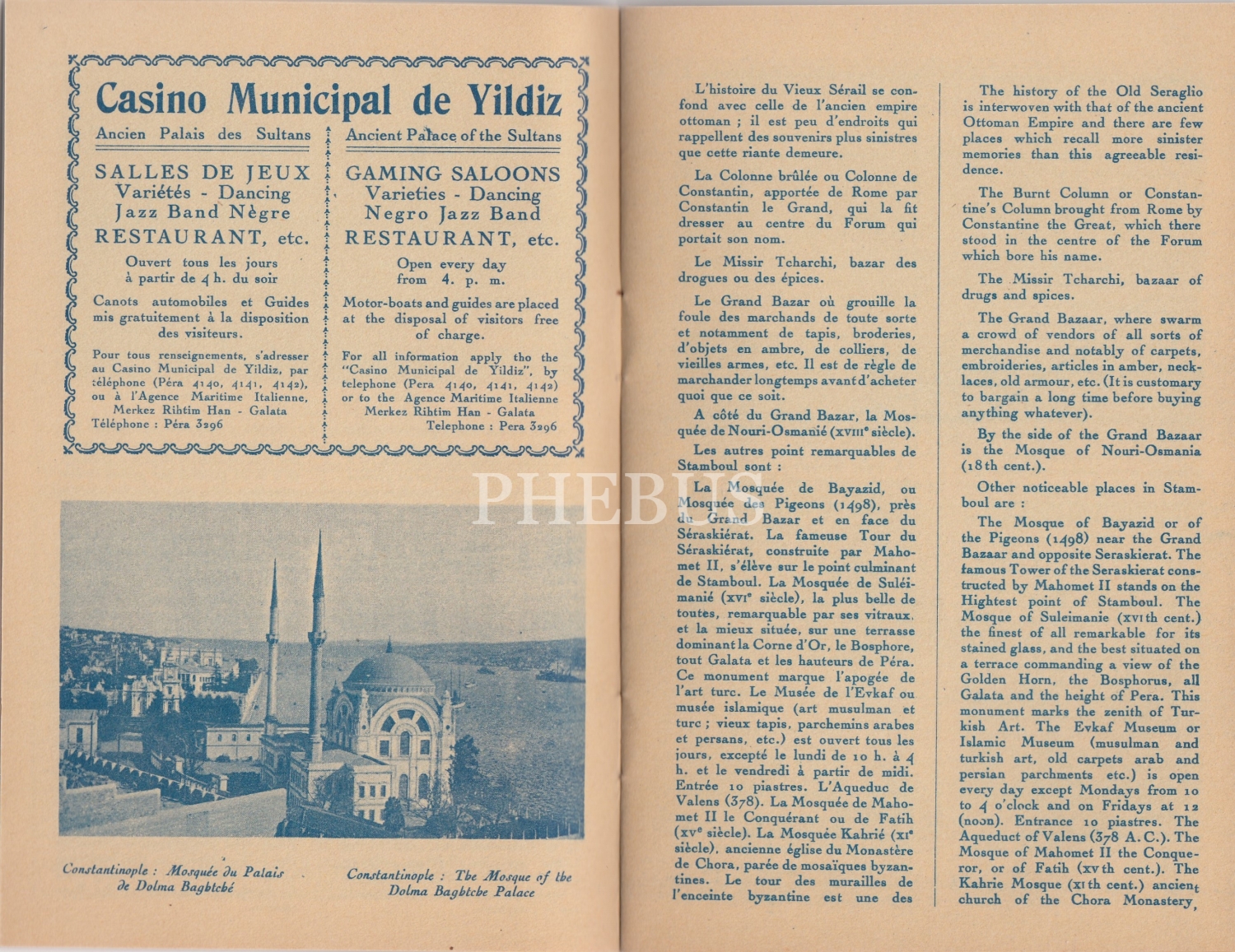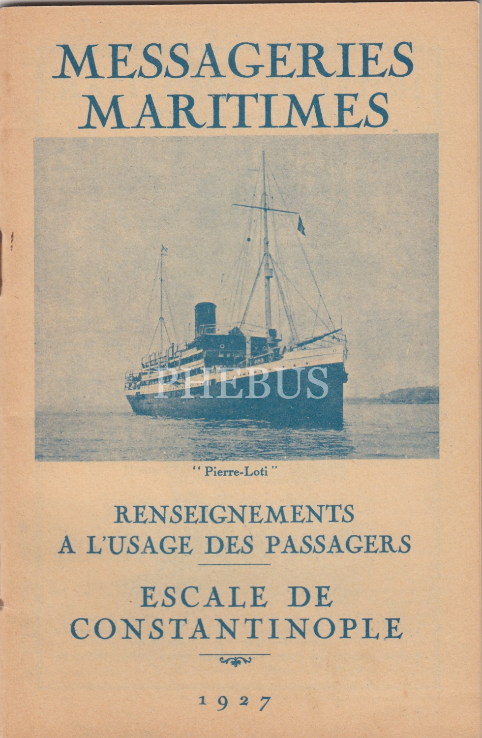 Messageries Maritimes Denizyolları Şirketinin Bastırdığı Pierre Loti Gemisi Kapaklı İstanbul Rehberi 1927, İçerisinde Tokatlian Oteli, Hacı Bekir Lokumu, Yıldız Gazinosu Reklamları Bulunmaktadır