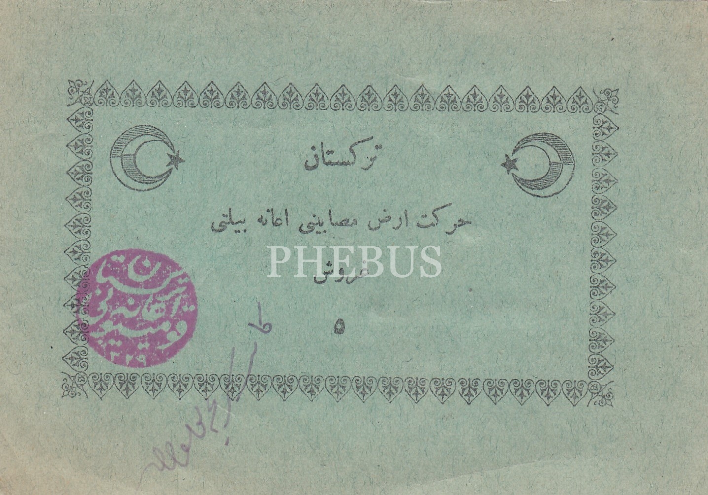 Osmanlıca Türkistan Hareket-i Arz (Depram) Mağdurları Menfaatine 5 Kuruşluk İane Bileti