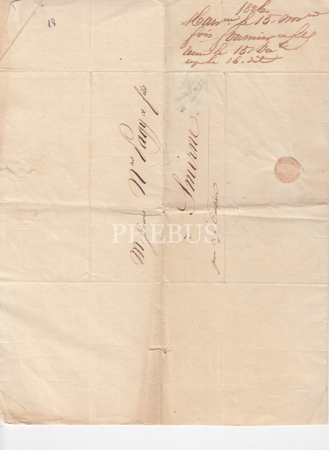 İzmir'de [Smyrne] Levanten Tüccar'a Ait Erken Dönem Postadan Geçmiş Ticari Yazışma 1826