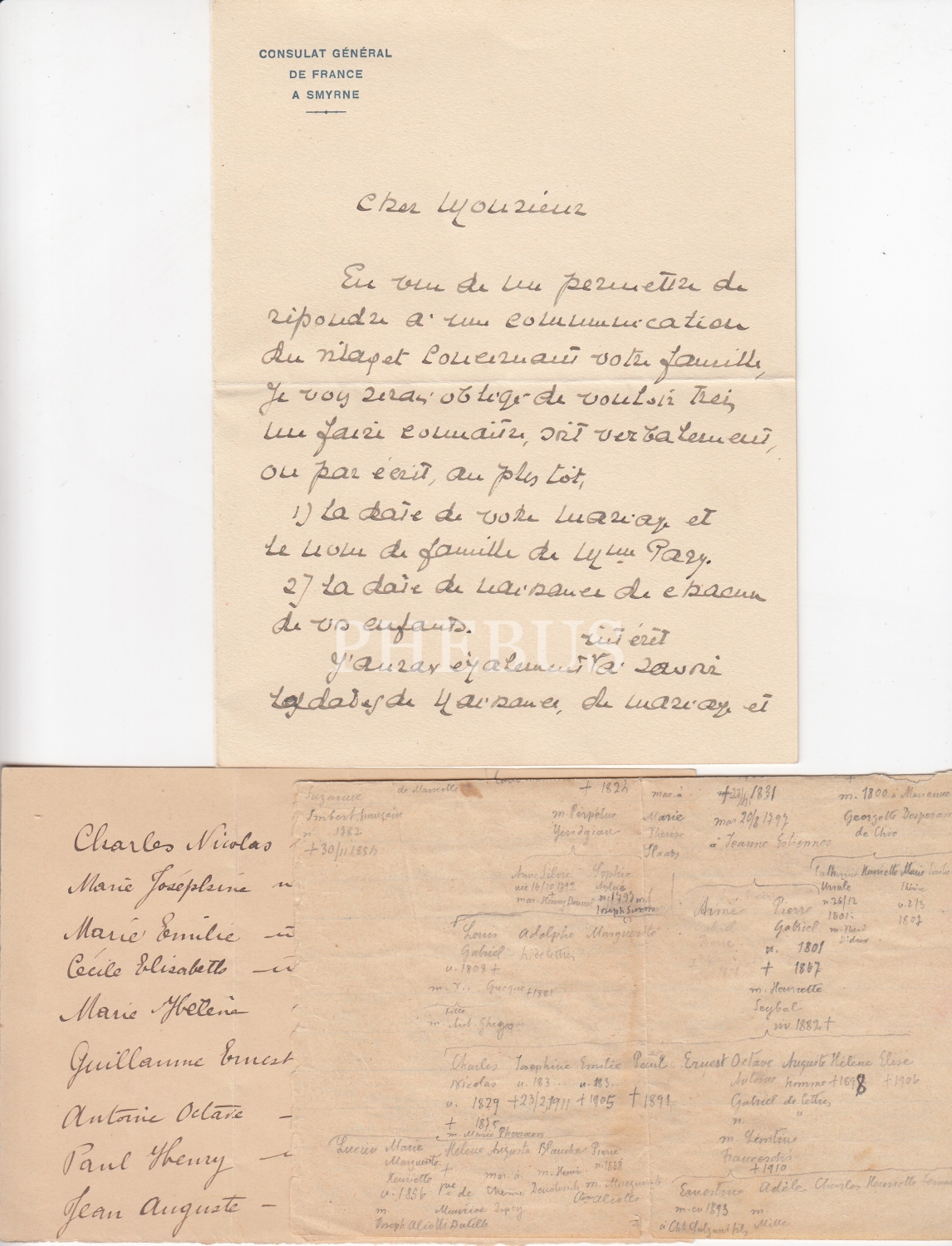 İzmir [Smyrne] Fransız Konsolosluğu Antetli Yazışma ve 2 Adet Belge