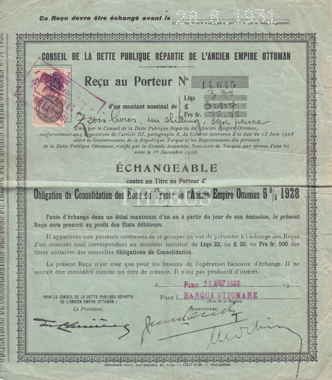 Osmanlı İmparatorluğu Borçları 1930 Tarihli Tasfiye Tahvili