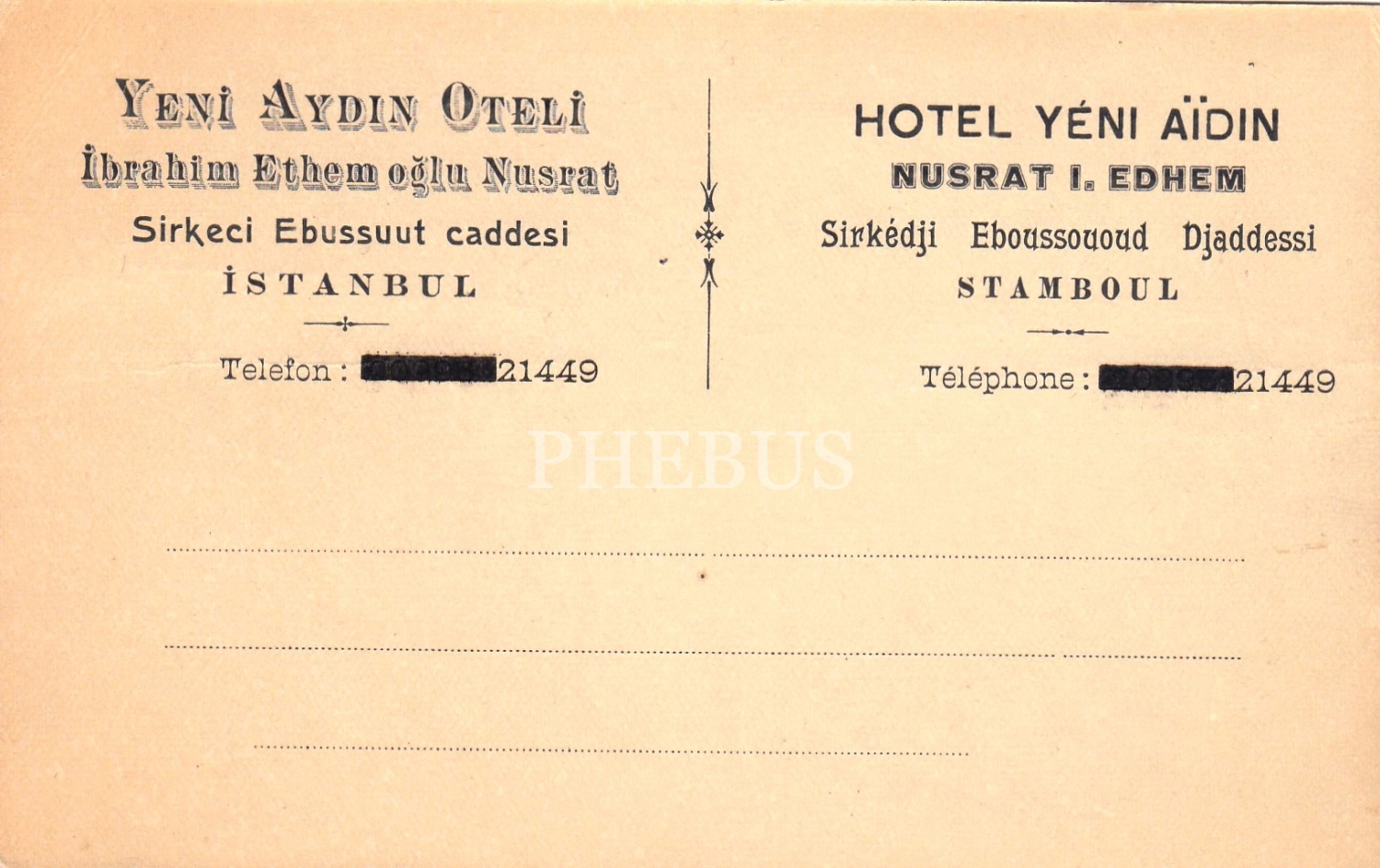 İstanbul'da Yeni Aydın Oteli Reklam Kartpostalı