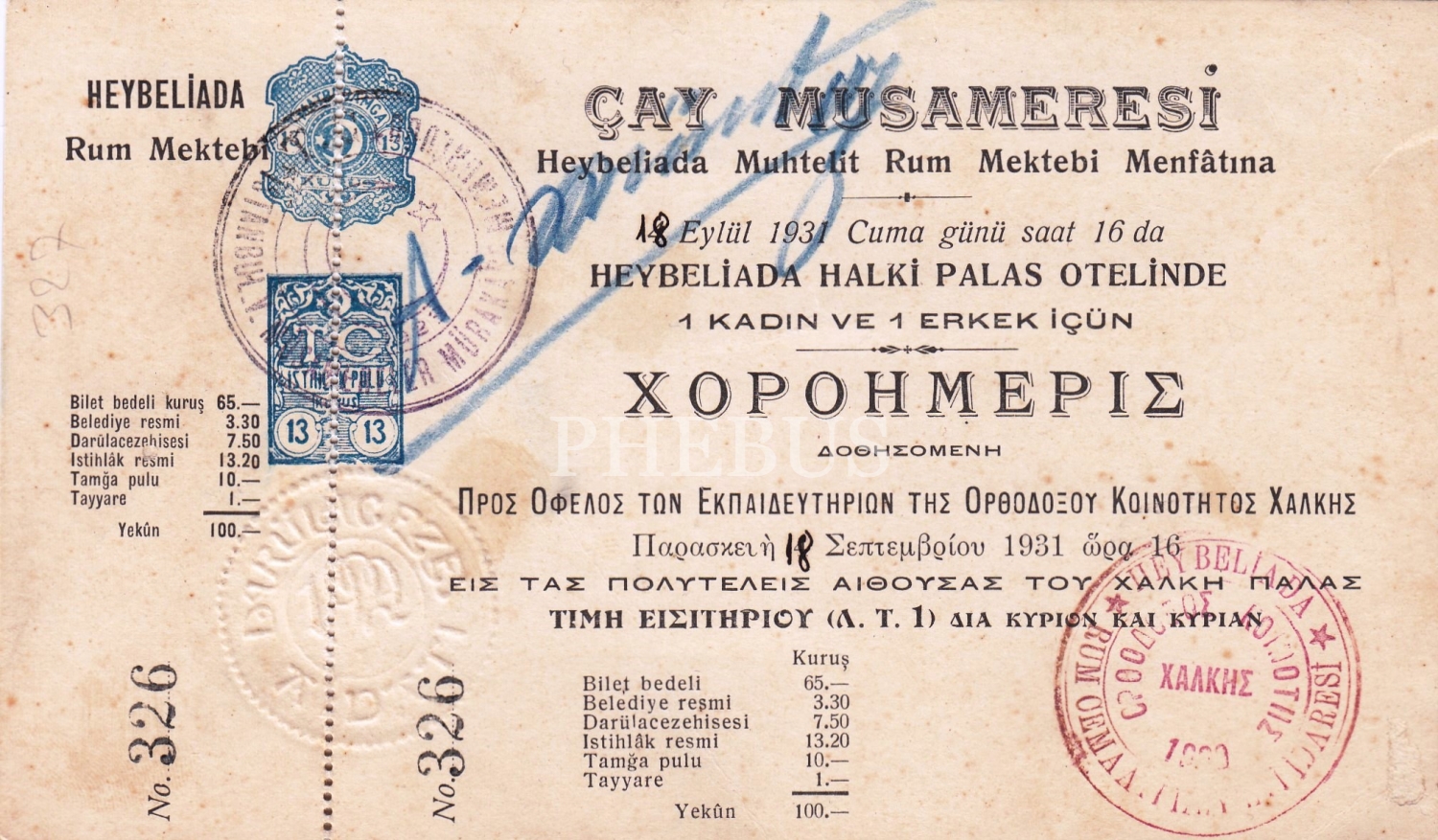 Türkçe - Rumca Heybeliada Rum Mektebi Çay Müsamaresi