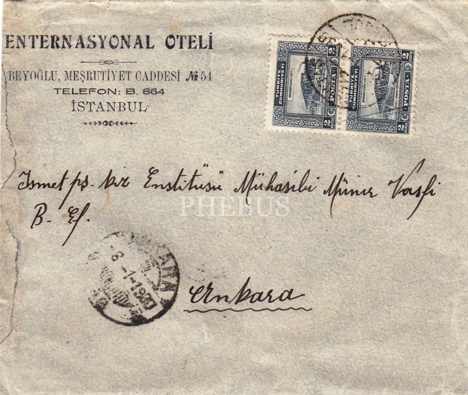 İstanbul Enternasyonel Oteli Antetli Zarf