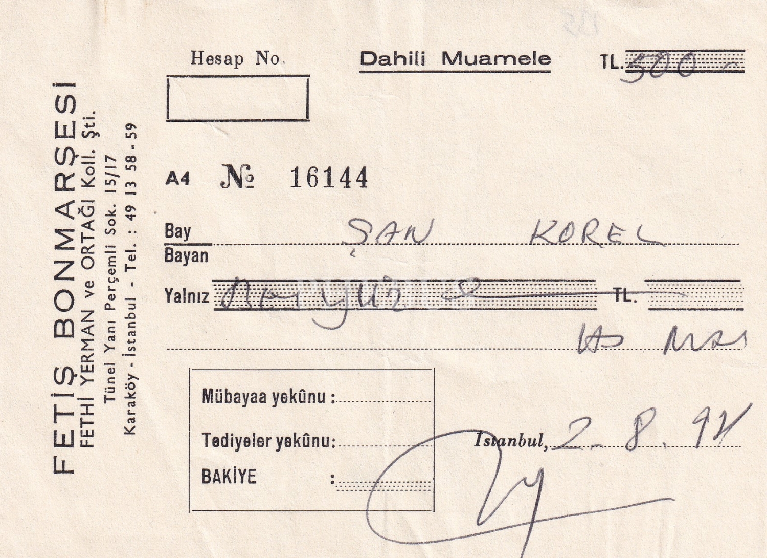 İstanbul Fetiş Bonmarşesi Makbuzu
