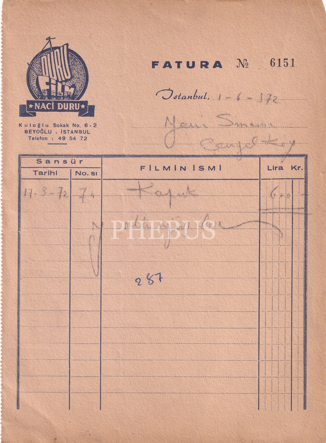 İstanbul Duru Film Antetli Film Faturası