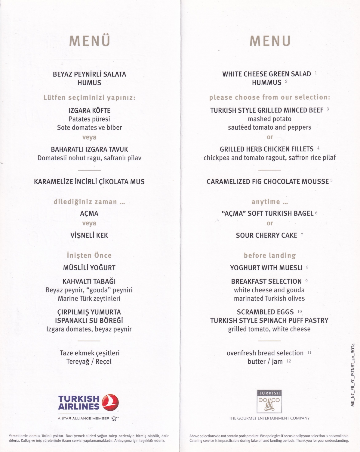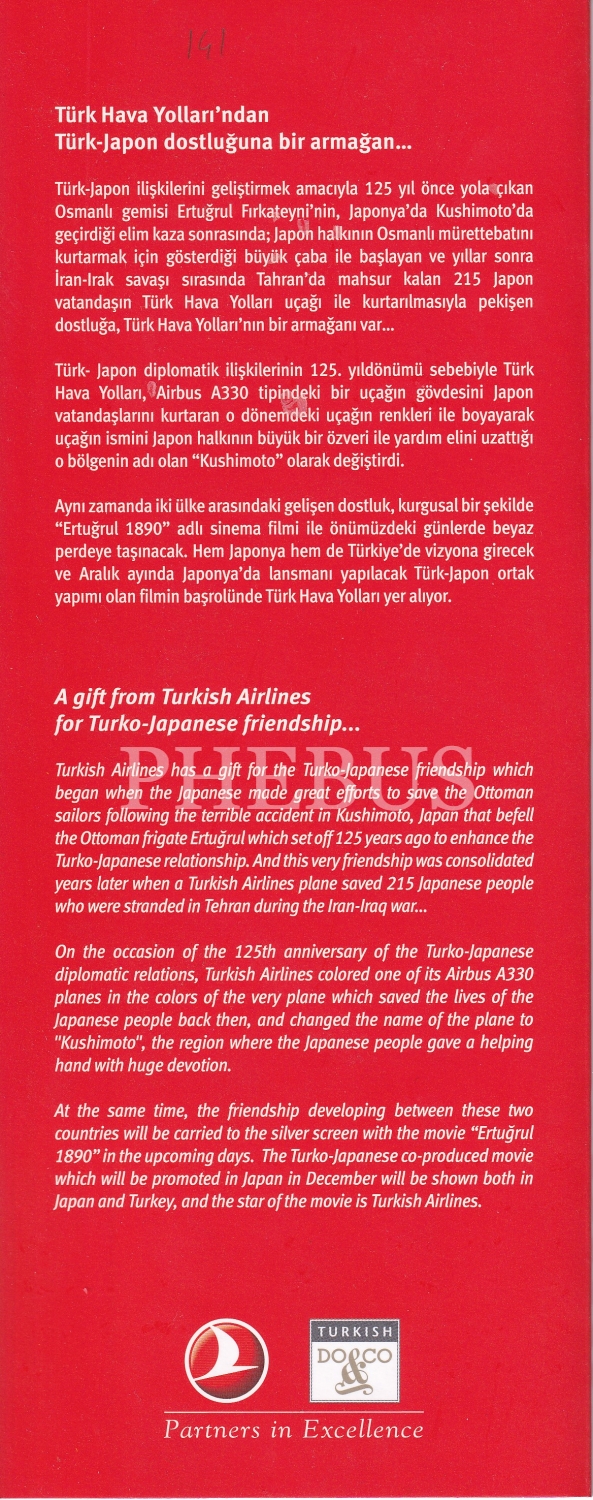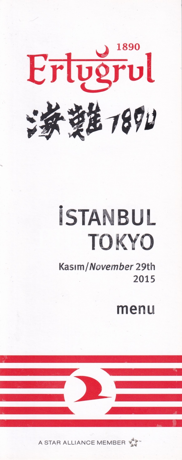 Türk Hava Yolları Tarafından 1890'da Japonya'da Batan Ertuğrul Fırkateyni Anısına Hazırlanan Özel Uçuş Yemek Menüsü Türkçe-Japonca