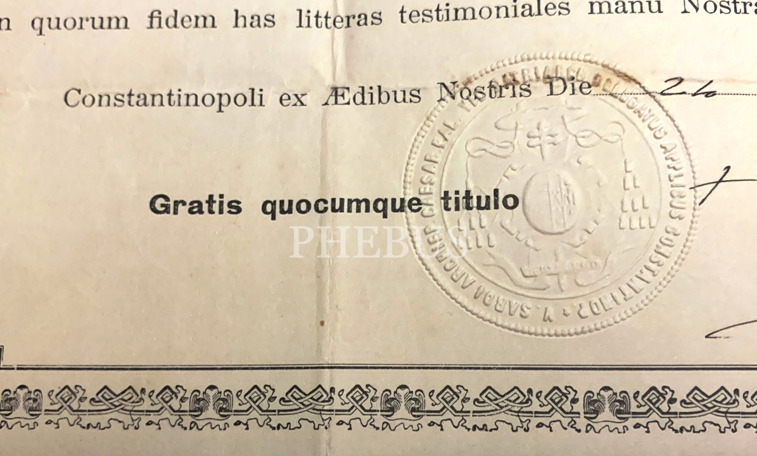 Kartpostal Editörü Zellich Matbaasında Tab Olunmuş İstanbul Apostolik Kilisesinden Verilmiş Berat 1909 29 x 40 Cm