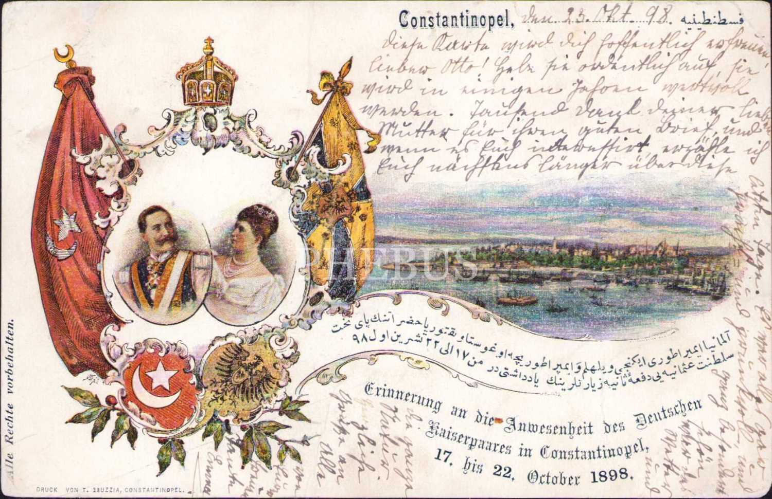 Osmanlı dönemi, Alman Kralı II. Wilhemn'in İstanbul'a gelişi münasabetiyle Almanca-Osmanlıca basılmış kartpostal, postadan geçmiş