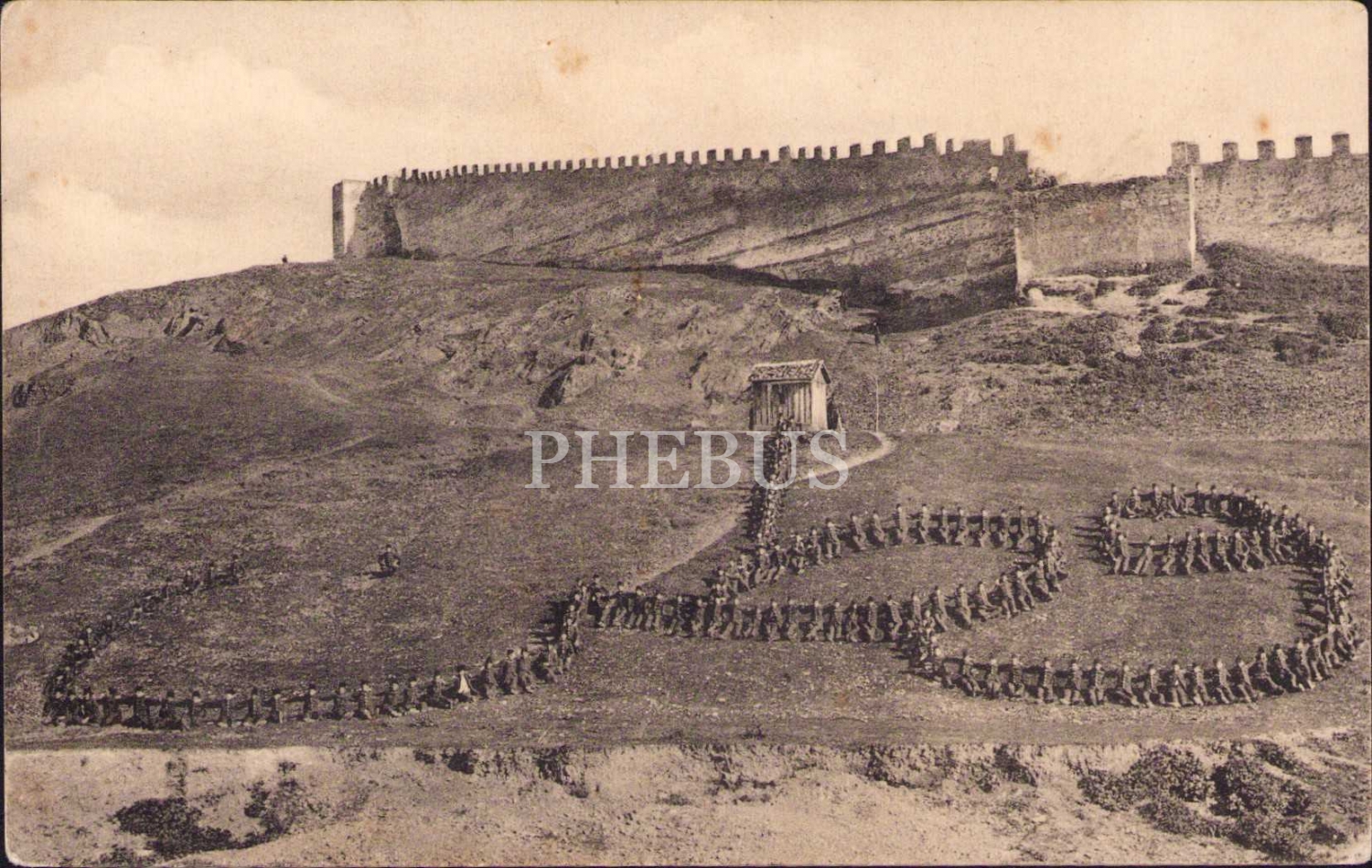 I. Dünya Savaşı sırasında Halep Kalesi önünde Osmanlı askerlerinin oluşturduğu 'Vatan' yazısı