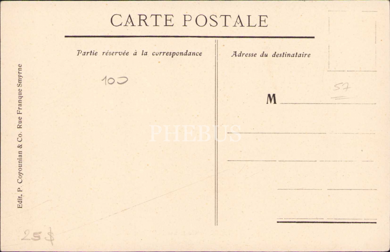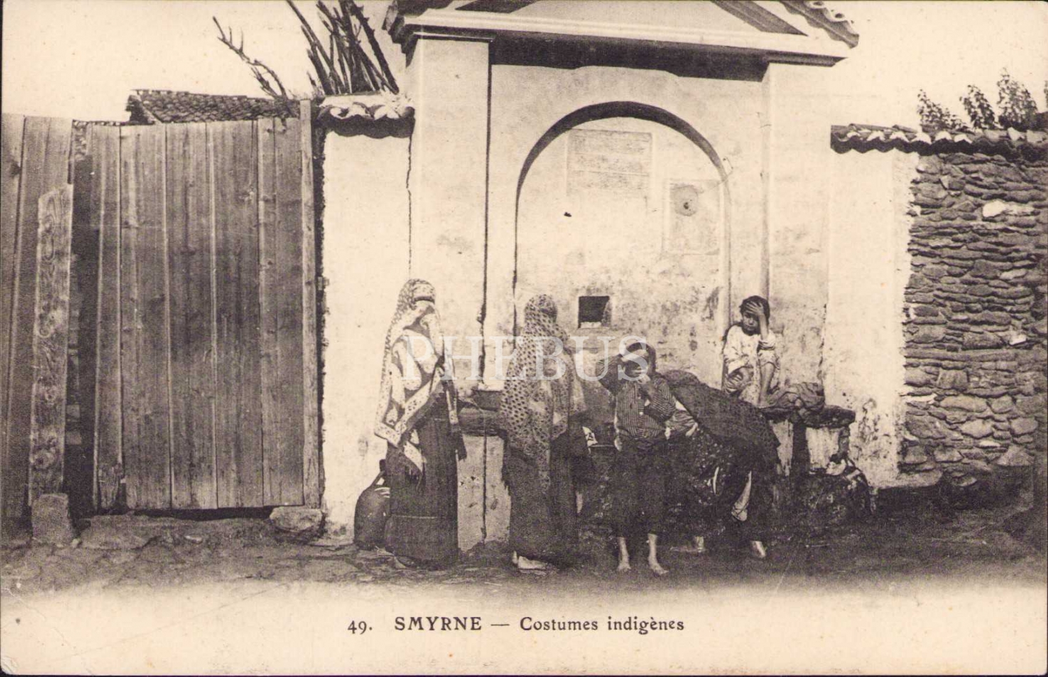 Osmanlı dönemi, İzmir'de yerli kostümlü insanlar, Editör P. Coyounian, bir kenarı kırık, haliyle