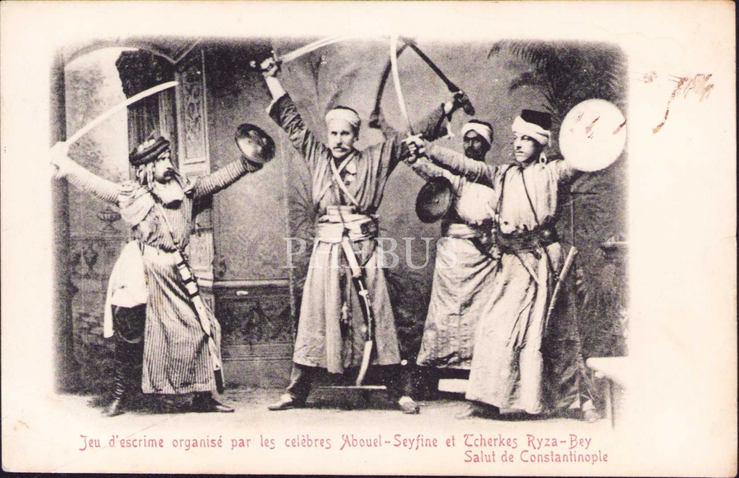 Osmanlı dönemi, Çerkez Rıza Bey tarafından düzenlenen eskrim oynundan bir kesit, Constantinople, postadan geçmiş, 1903 tarihli