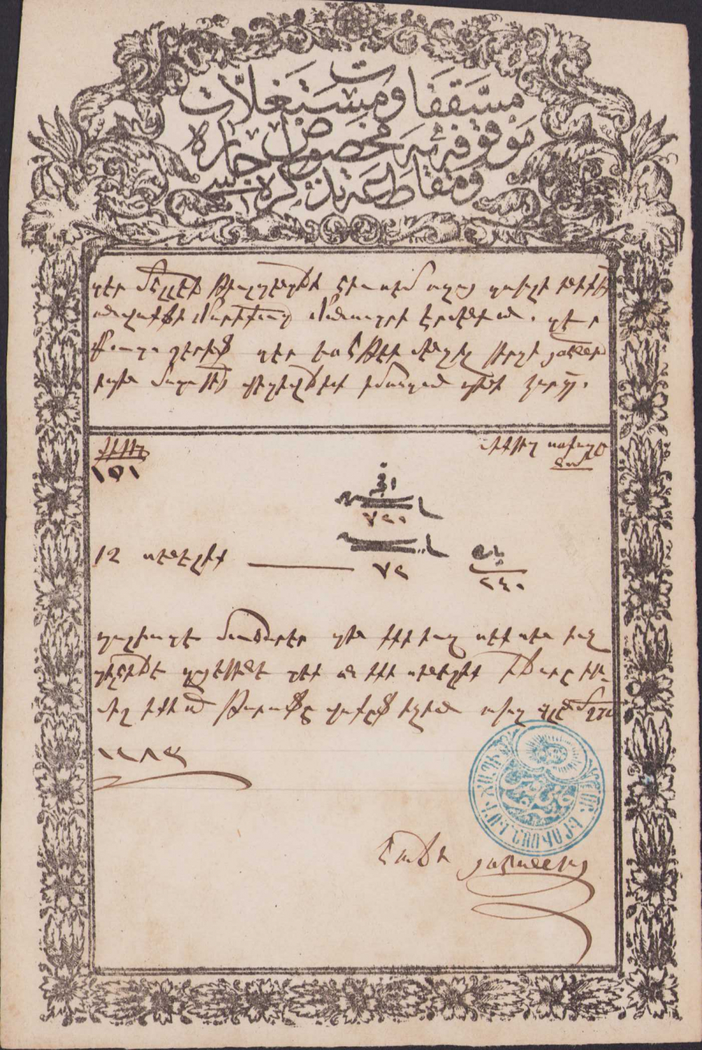 Kudüs-ü Şerif'e ait vergi makbuzu, Osmanlıca - Ermenice, 12x18cm
