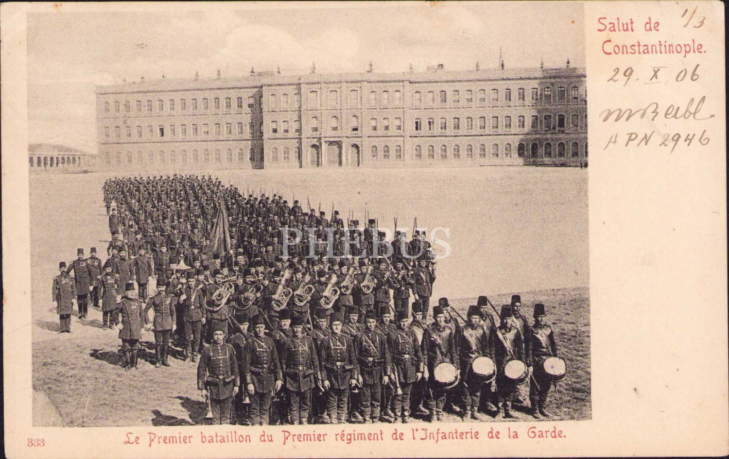 Osmanlı dönemi, Osmanlı Muhafız Piyade Alayı'nın Birinci Taburu, Constantinople, postadan geçmiş, bir kenarı kırık