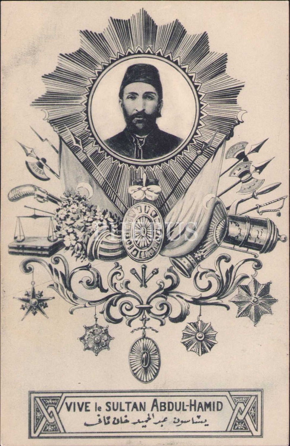 Osmanlı dönemi taş baskı, parçalı kartpostal, Sultan II. Abdülhamit, "Yaşasın Abdulhamid Han Sani" yazılı, baskı Libraririe Nilsson Paris