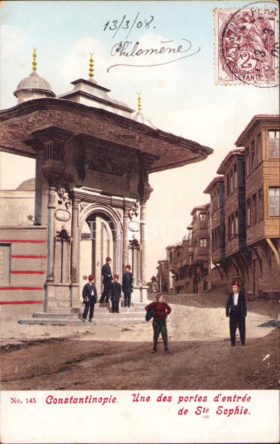 Osmanlı dönemi, Ayasofya Camii'nin giriş kapılarından biri, postadan geçmiş, 1908 tarihli