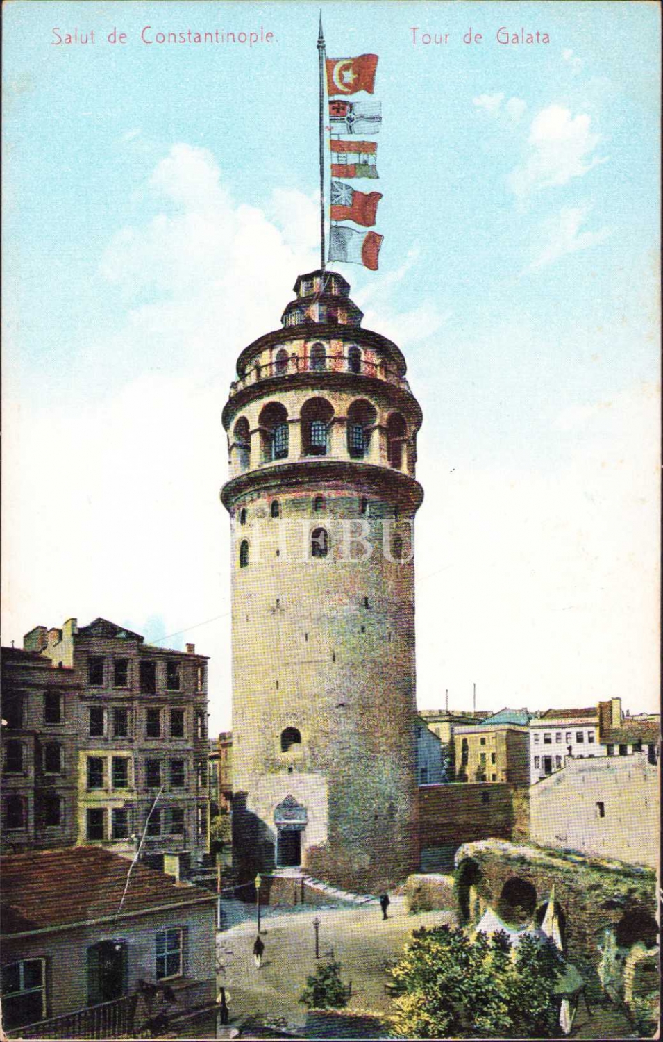 Osmanlı dönemi, Galata Kulesi, Constantinople, bayrak detaylı
