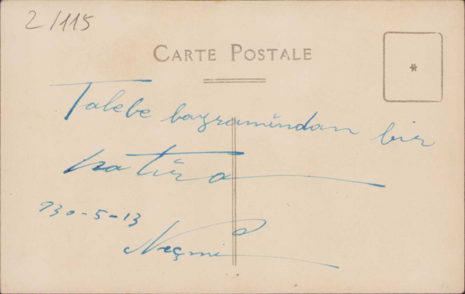 Ankara Nafia Fen Mektebi Tiyatro Grubu, 1930 tarihli, arka yüzü ithaf yazılı