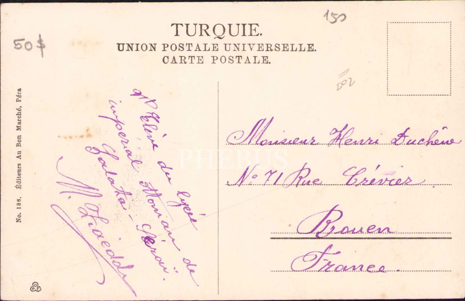 Osmanlı dönemi, Galatasaray Lisesi, Editör Au Bon Marche, Constantinople, postadan geçmiş