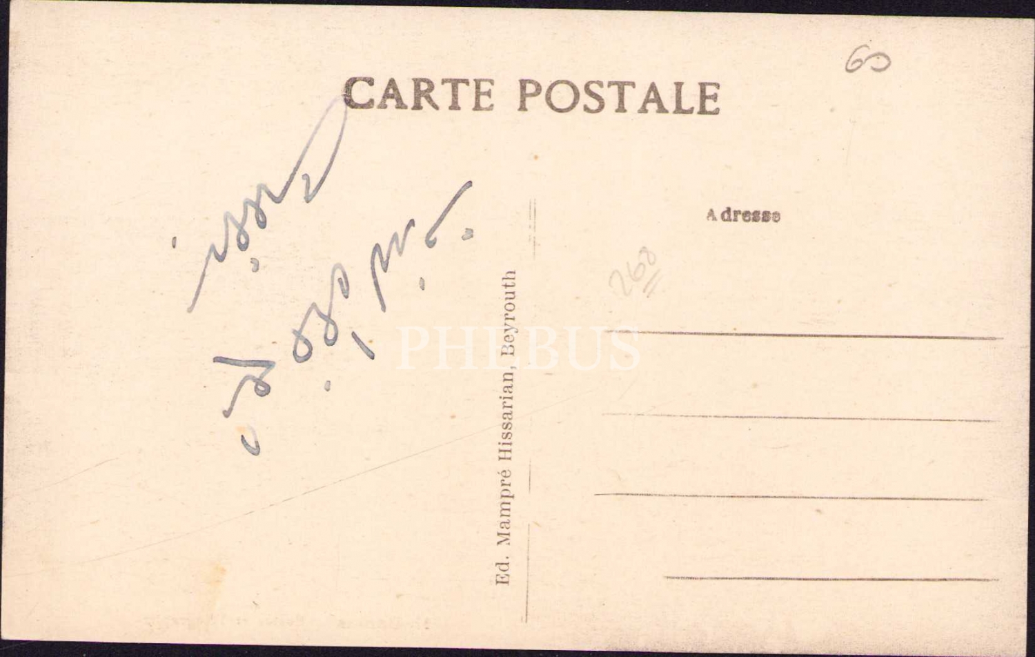 Osmanlı dönemi, Şam Postahanesi, Editör Mampre Hissarian, Beyrut, arkası Osmanlıca yazılı