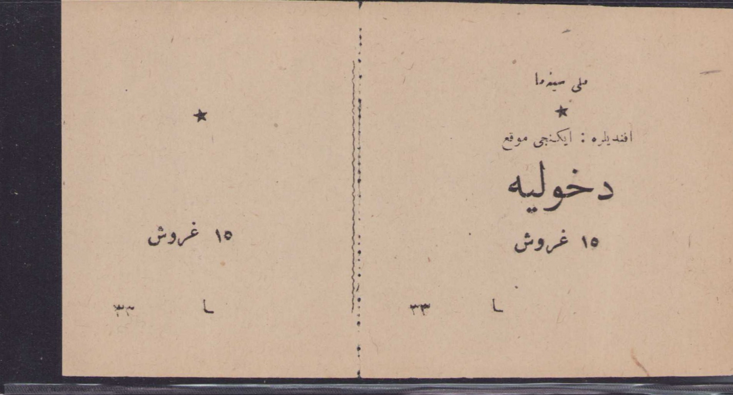Osmanlı Milli Sinema, iki kişilik mevki bileti, 10 kuruş, 15x8cm