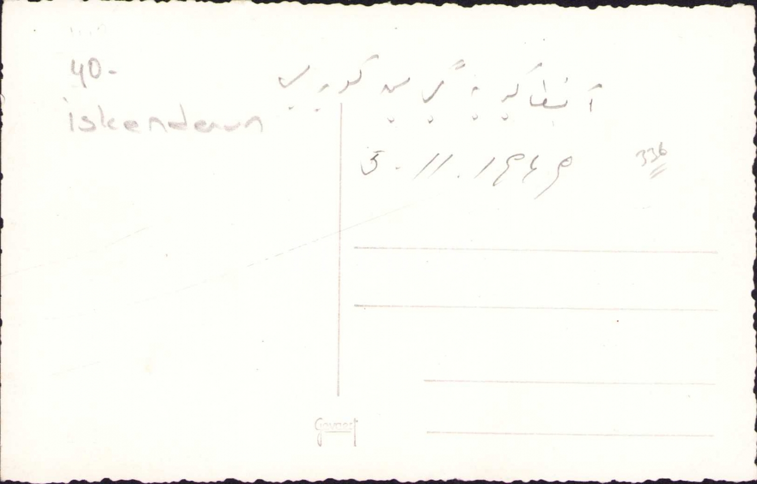 İskenderun görünümü, 1949 tarihli, Osmanlıca yazılı