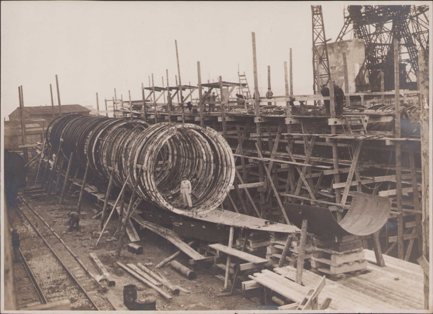 Sakarya'da Dumlupınar Denizaltısı inşa çalışması 3 Mart 1930 tarihli, 23x16,5 cm