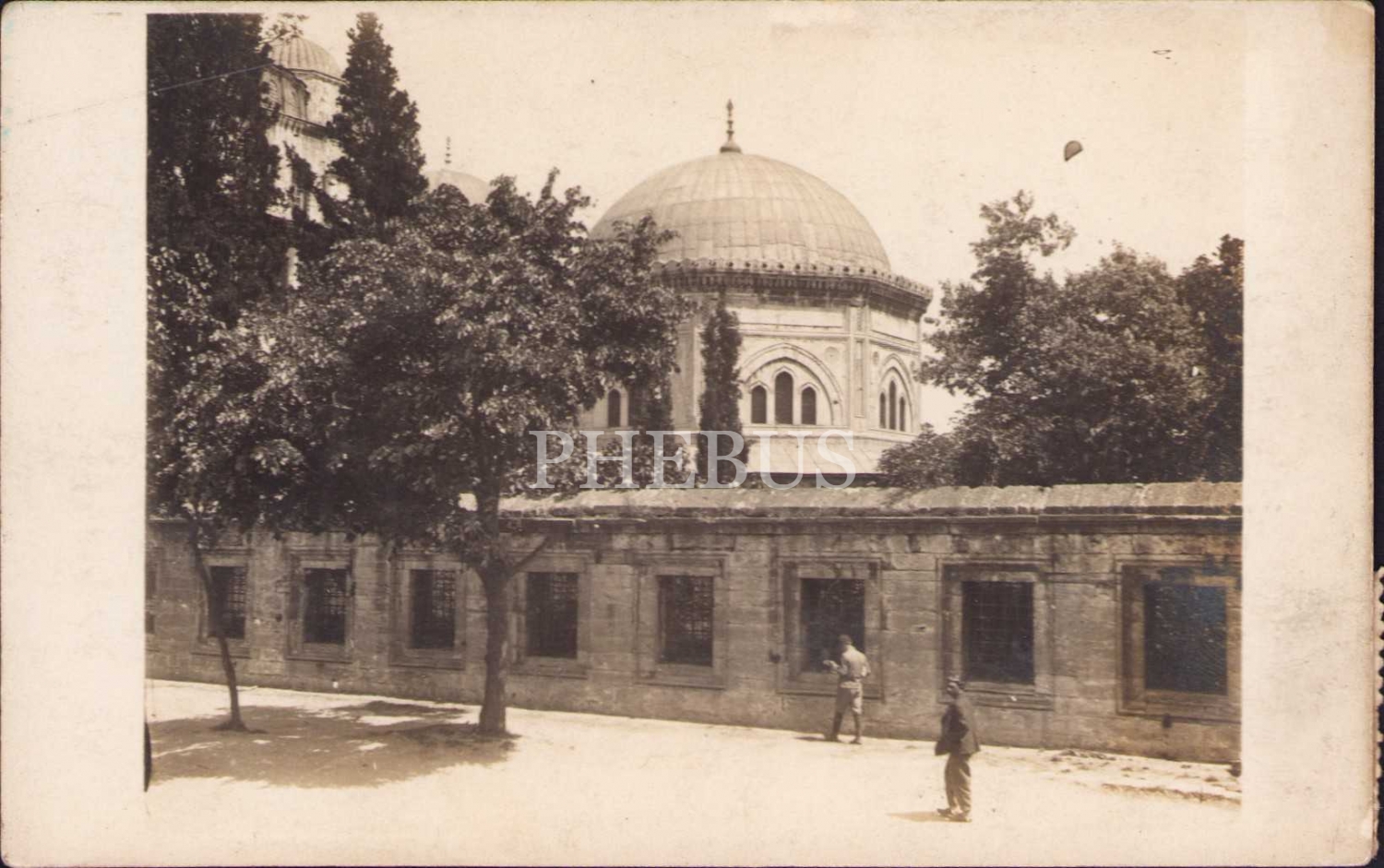 İstanbul Süleymaniye Camii Türbesi, postadan geçmiş, arkası Osmanlıca yazılı