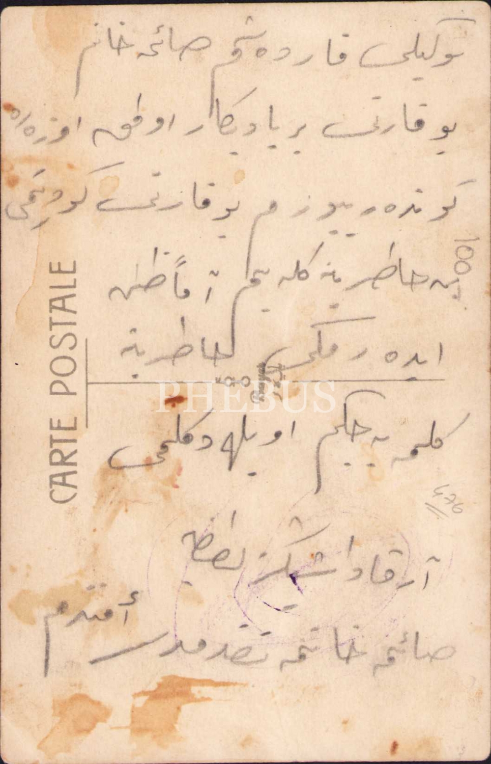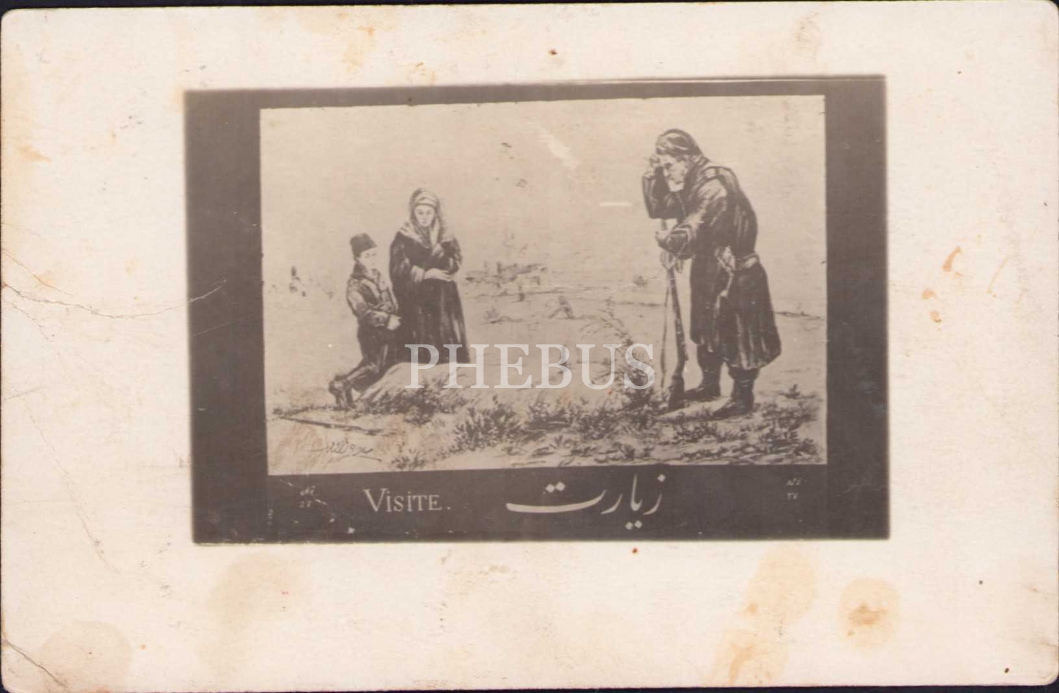 Osmanlı dönemi mezar ziyareti konulu fotokart, Osmanlıca ithaflı