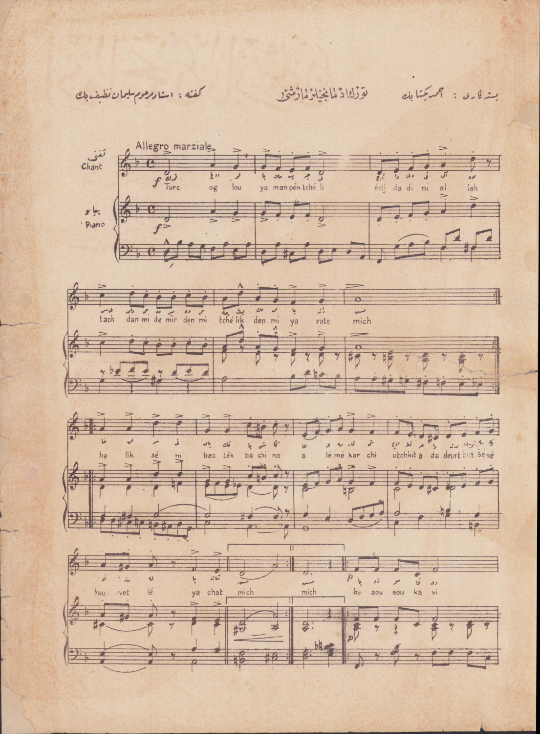 Osmanlı İdmancı Marşı Nota, Bestekar Ahmet Yekta, Türkiye İdman Cemiyetleri İttifakı, Türk bayrağı kapaklı, 4 sayfa, 25x35cm