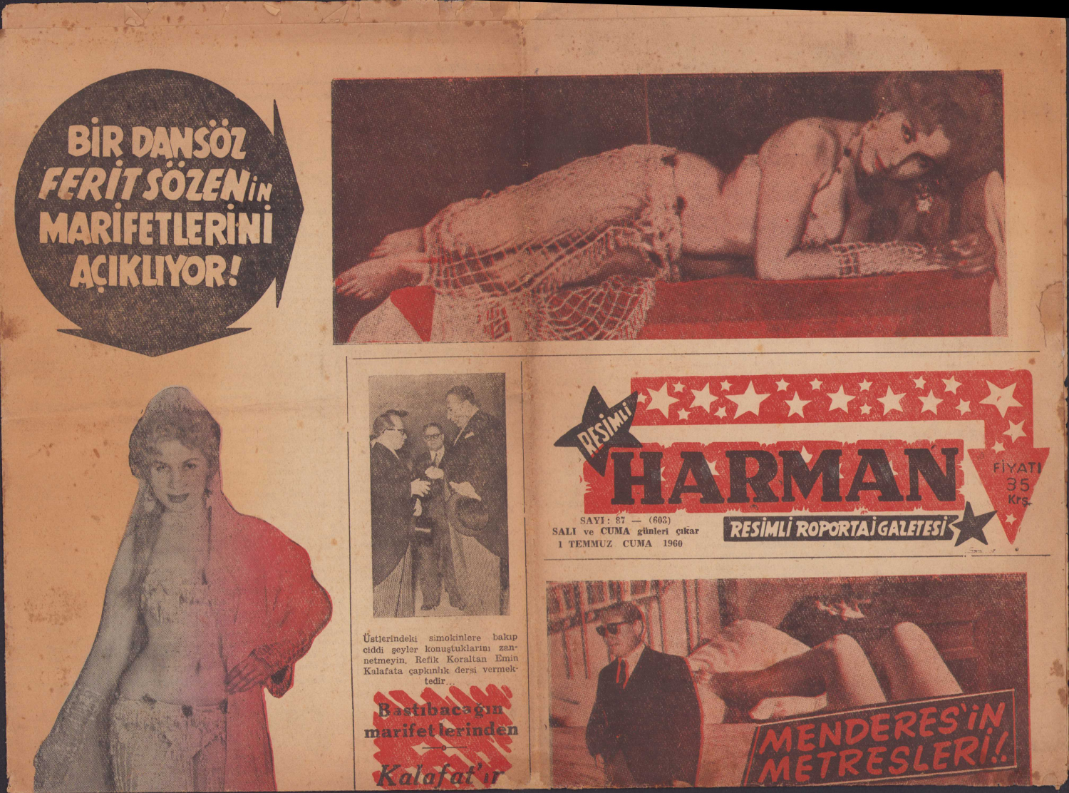 Harman-Resimli Röportaj Gazetesi, 'Sabıkların (Menderes-Demokrat Parti) sefahat alemleri' manşetli, 1 Temmuz 1960 tarihli, sayı: 87, 4 sayfa, 34x50cm