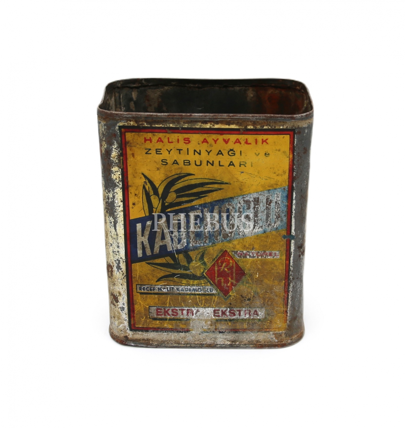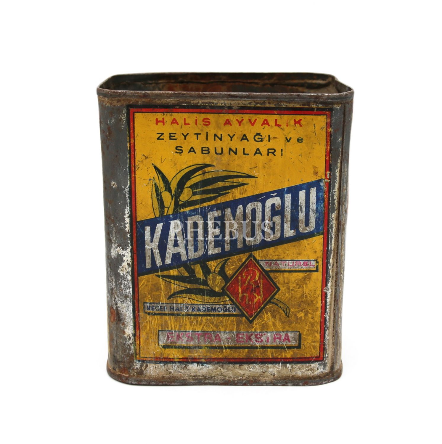 Kademoğlu Halis Ayvalık Zeytinyağı ve Sabun marka teneke kutu, 8x13x10 cm