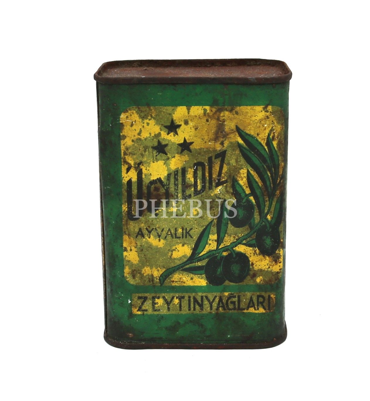 Üçyıldız Ayvalık marka teneke zeytinyağı kutusu, 10x8x16 cm