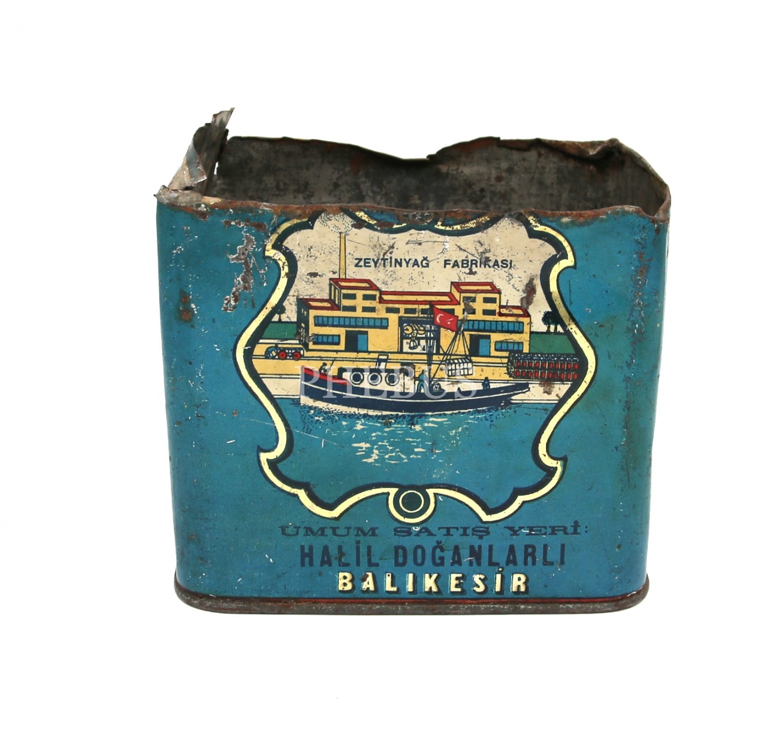 Halil Doğanlarlı Balıkesir, teneke zeytinyağı kutusu, 14x14x16 cm