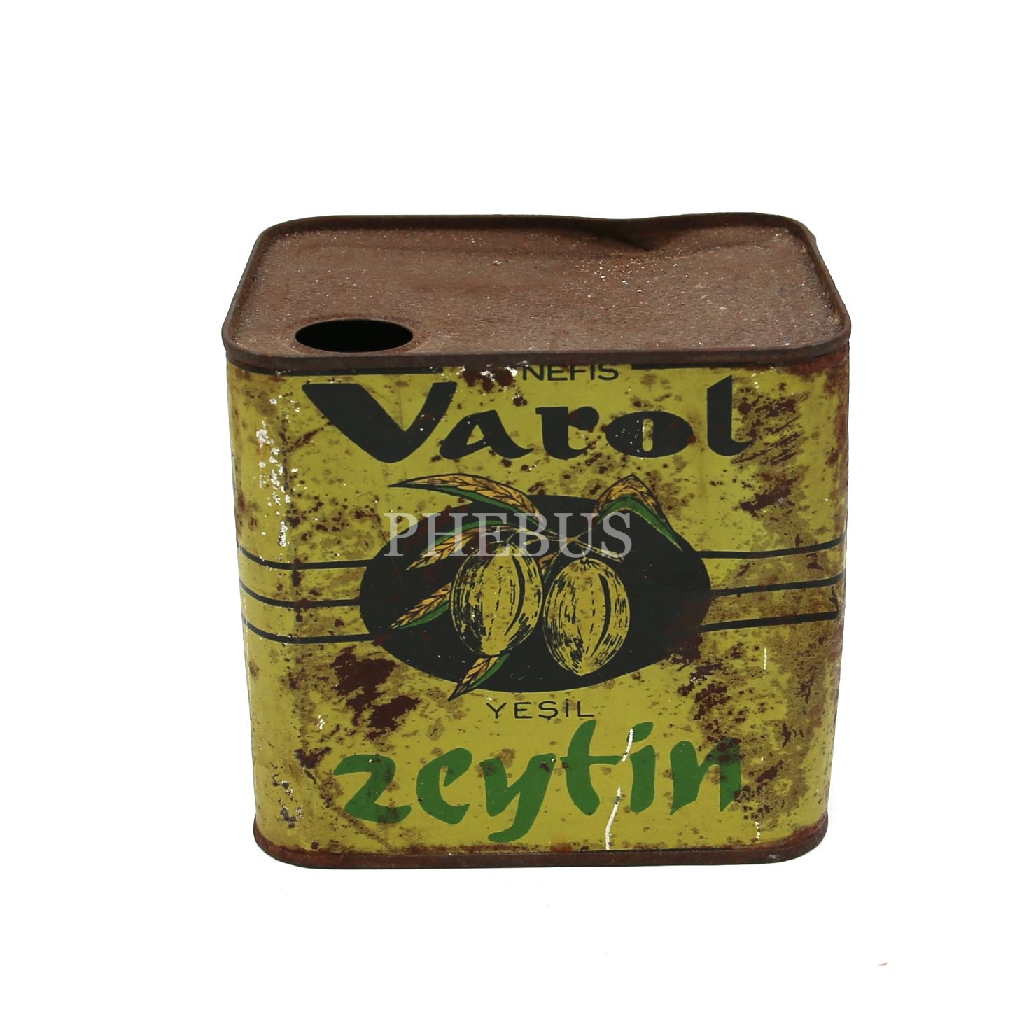 Nefis Varol marka yeşil zeytin teneke kutusu, 14x14x10 cm