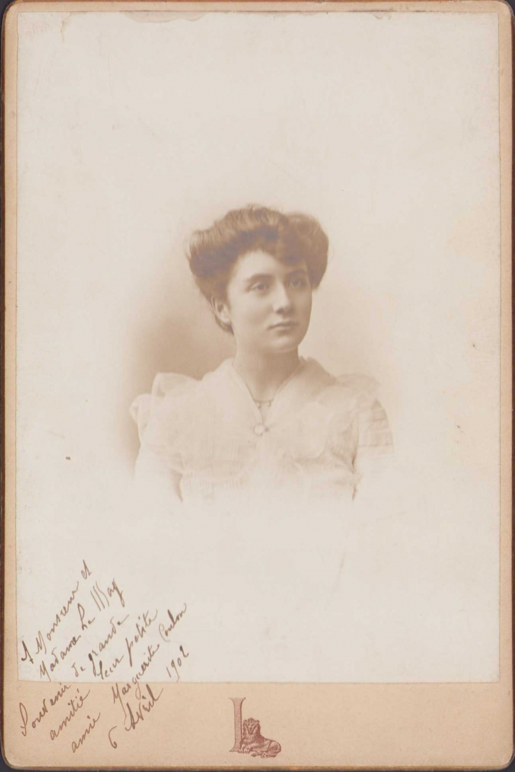 Güzel kadın portre, 1902 tarihli, Fransızca ithaflı, Foto Paris Louvre, 11x16,5cm