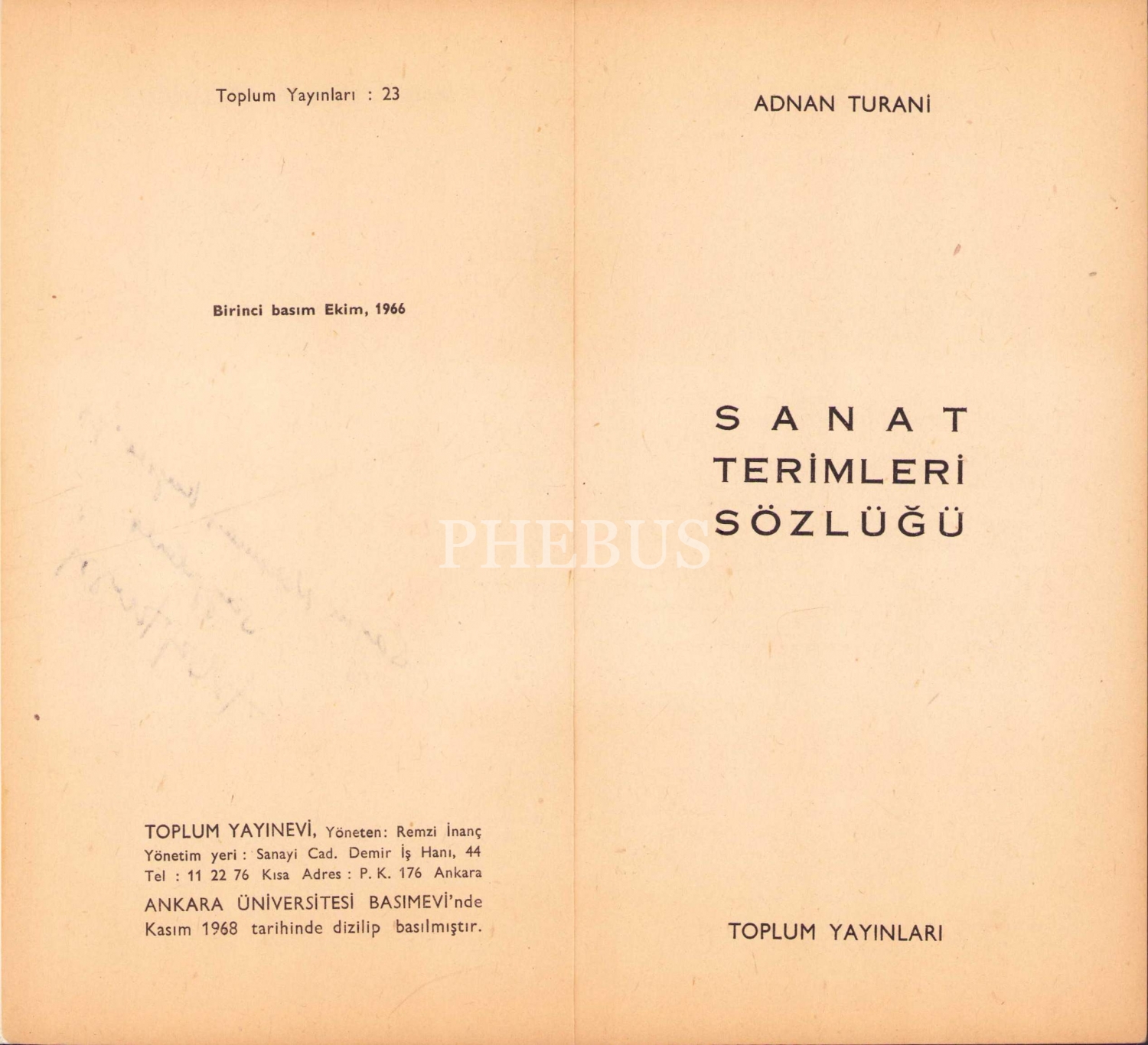 Sanat Terimleri Sözlüğü, Adnan Turani'den imzalı ve ithaflı, 1968, 125 sayfa