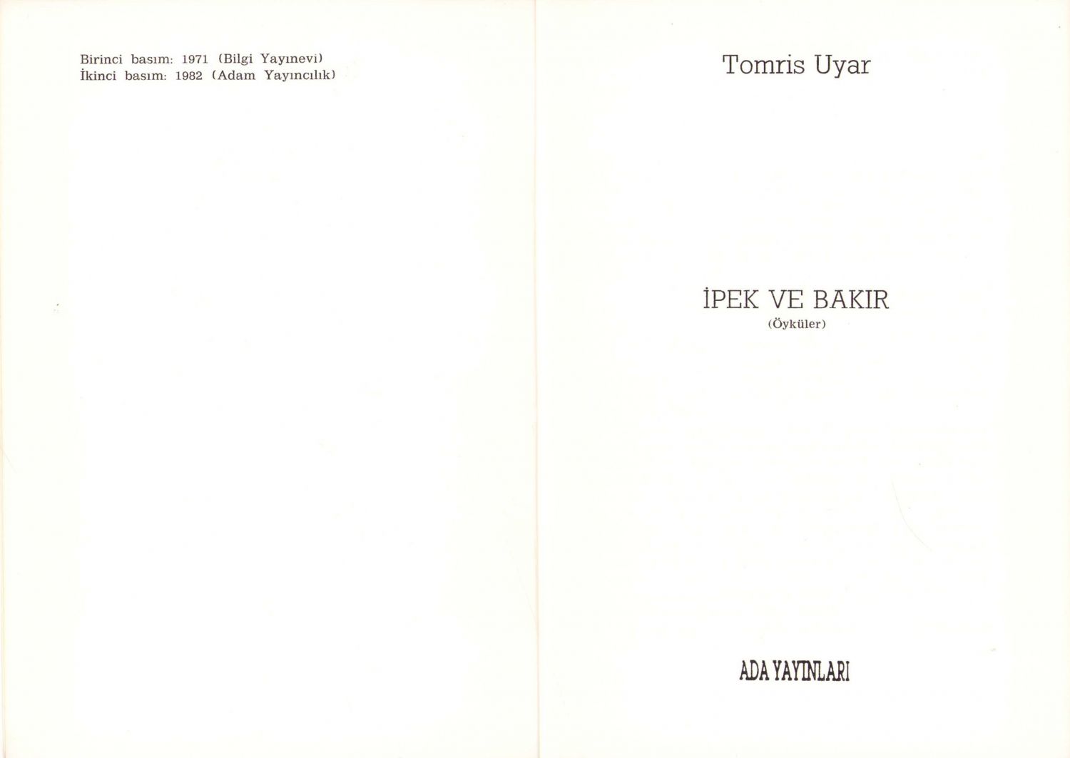 İpek ve Bakır, Tomris Uyar'dan Turgay Gönenç'e imzalı ve ithaflı, 1988, 100 sayfa