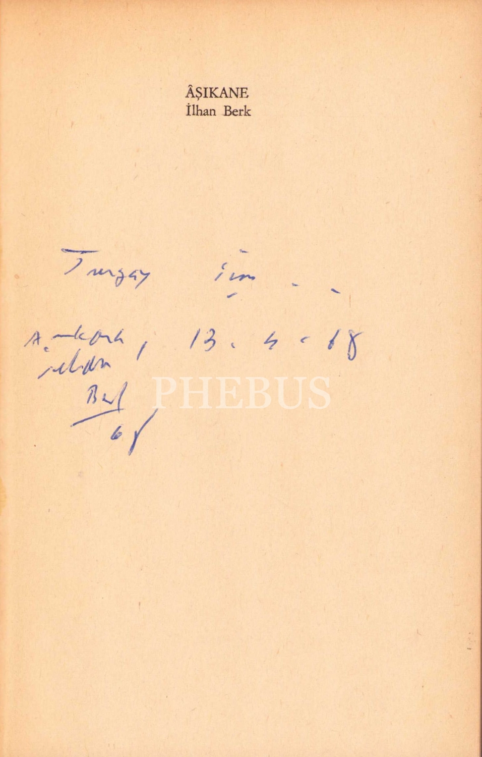 Aşıkane, İlhan Berk'den Turgay Gönenç'e imzalı ve ithaflı, İlk Baskı, 1968, 46 sayfa