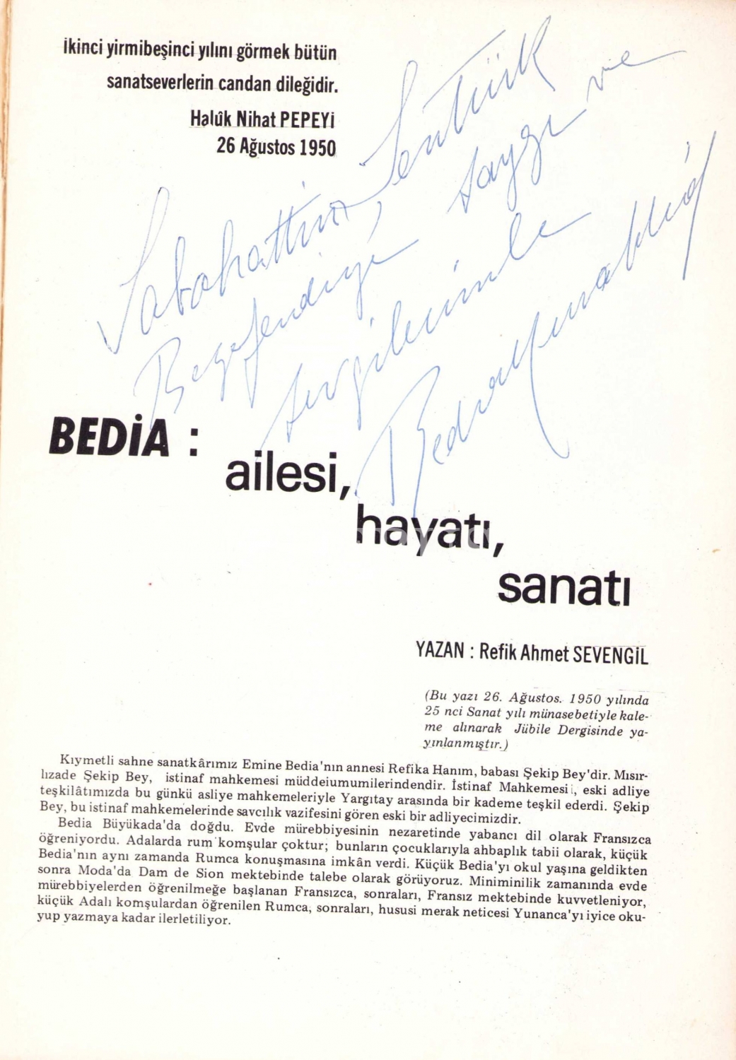 İthaf " Sabahattin Şentürk Beyefendiye saygı ve sevgilerimle" şeklindedir. Ön kapak ciltten hafif ayrılmış vaziyettedir.