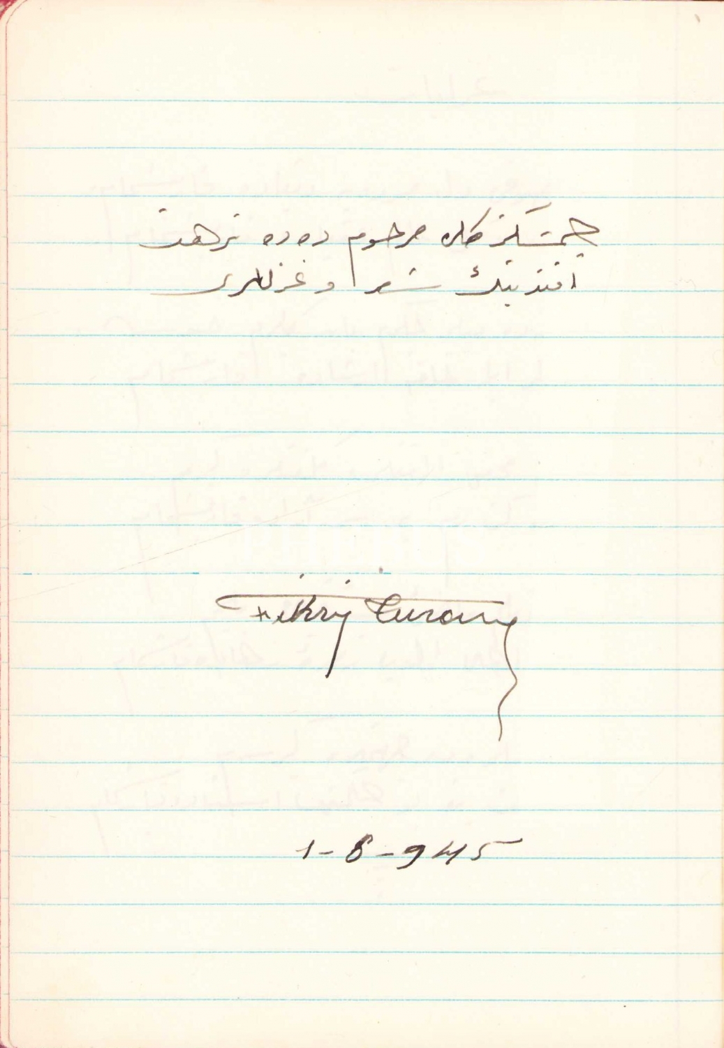 Çemişgezekli Merhum Dede Nüzhet Efendi'nin Fikri Turan tarafından derlenen Osmanlıca şiir ve gazelleri, 134 sayfa, 18x13 cm