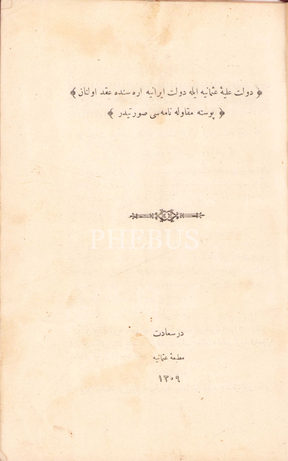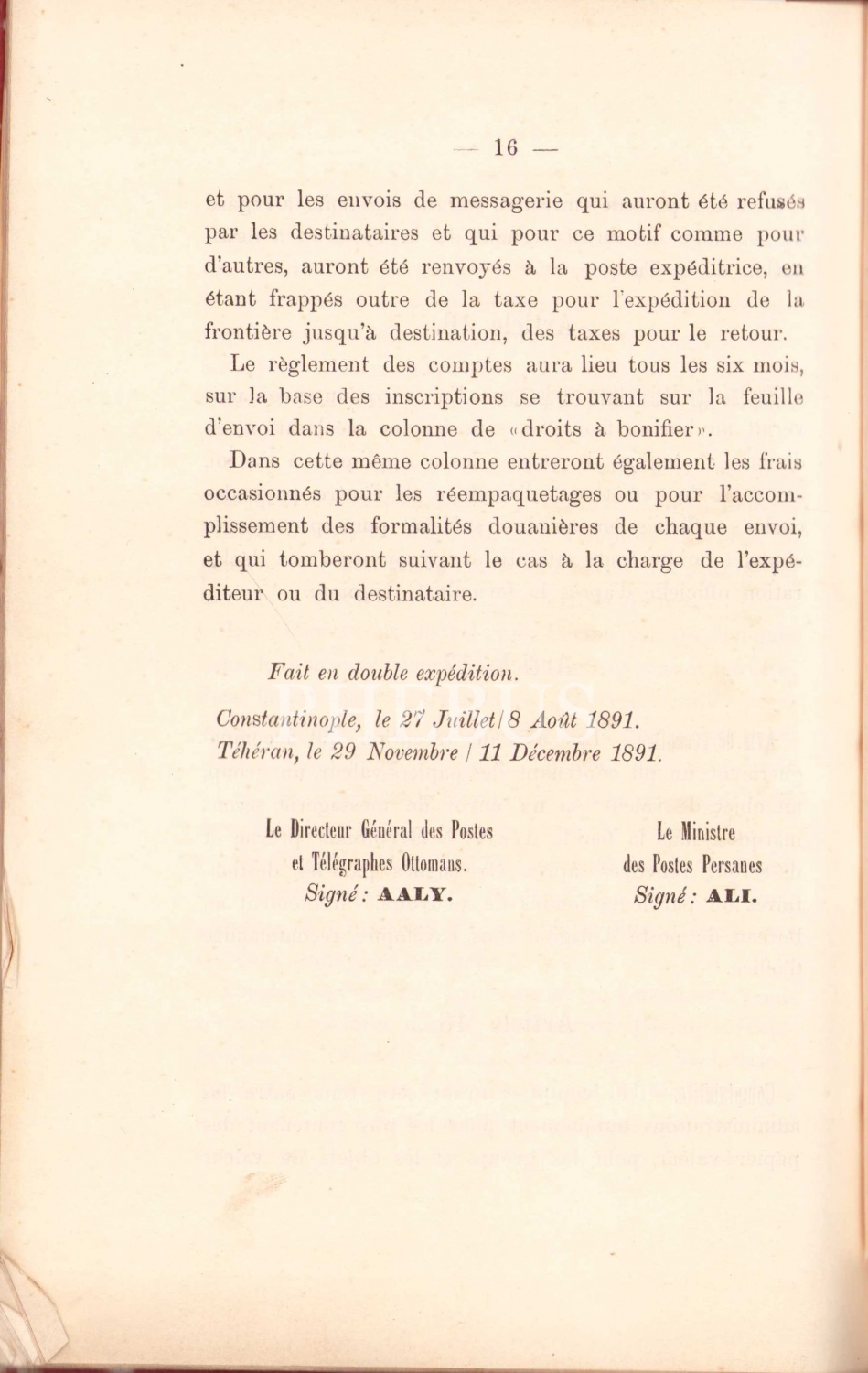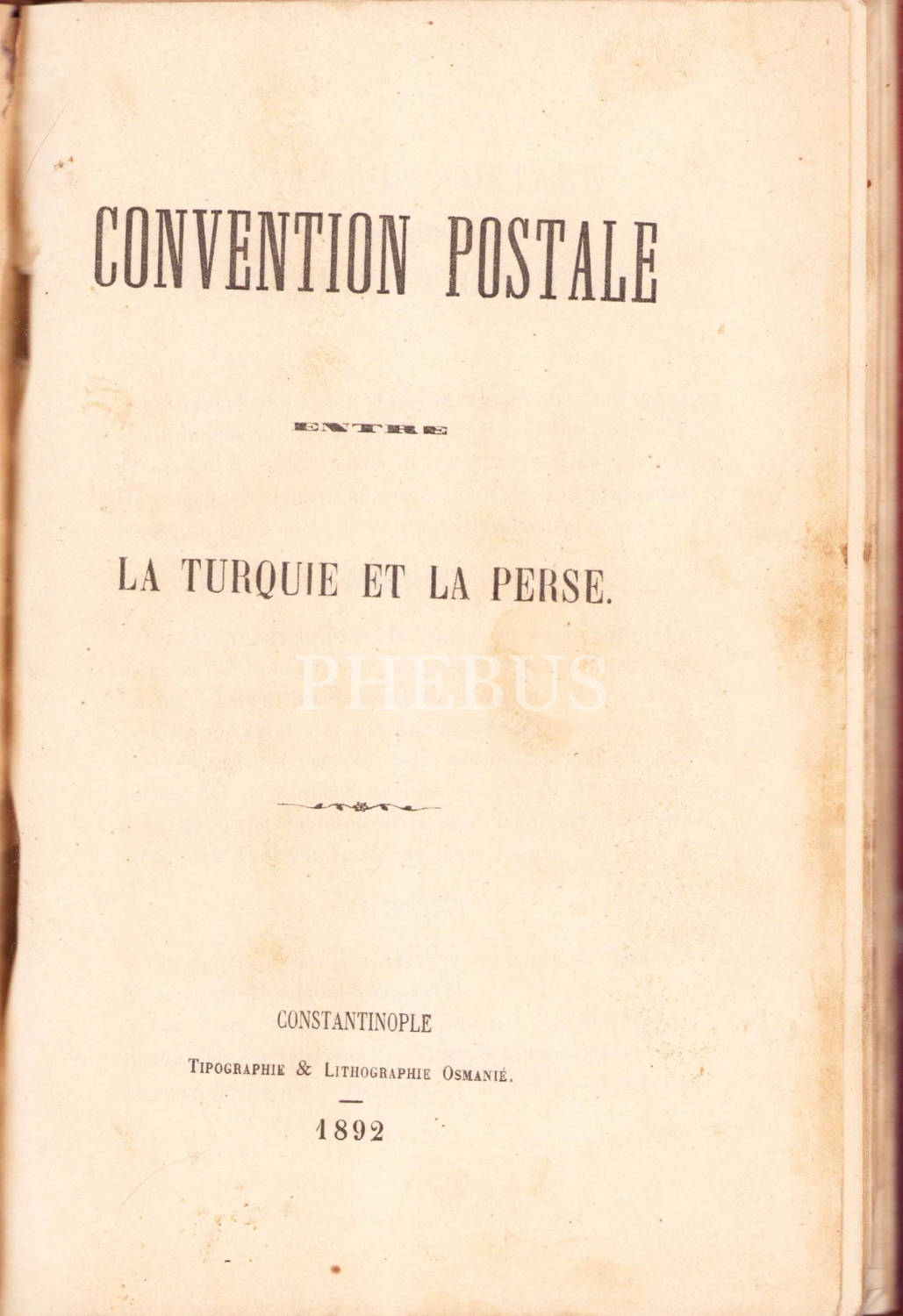 Fransızca-Osmanlıca, Convetion Postale, La Turquie Et La Perse, Osmanlı ve İran Posta Anlaşması Mevzuatı, Constantinople 1892, Dersaadet Matbaa-ı Osmaniyye 1309, 14 +16 sayfa