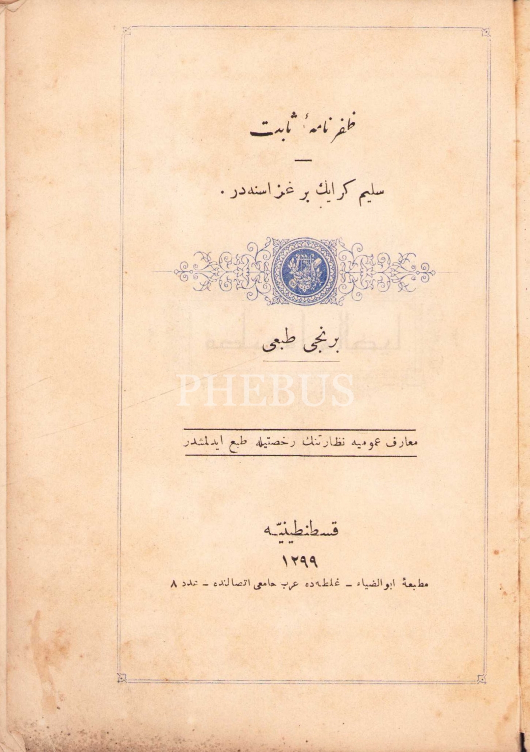 Osmanlıca Zafernâme-i Sabit, İstanbul 1299, Matbaa-i Ebüzziya, 46 sayfa, ÖZEGE; 23601